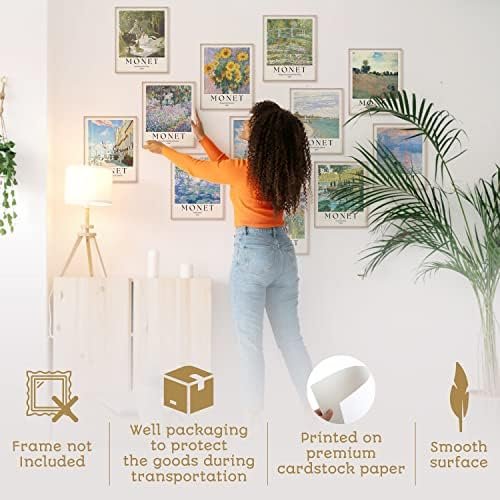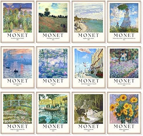 CLASSIC SET: The set features works like Giverny Monet garden, bouquet of sunflowers, poppy field Monet Japanese bridge print, impression sunrise Monet, water lilies Monet, etc. The set includes 12 art prints 8×10 inches (UNFRAMED). The pictures exudes an artsy and etheral vibe with the artist name and artwork title