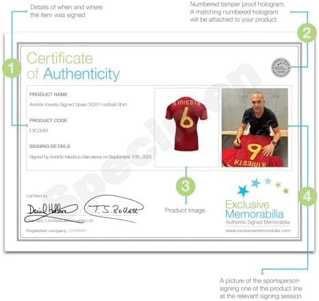 Exclusive Memorabilia unconditionally guarantees all signed items are genuine. The item will come with a certificate of authenticity showing the celebrity at the autograph session. The certificate features a numbered hologram that matches an identical hologram affixed to the product.