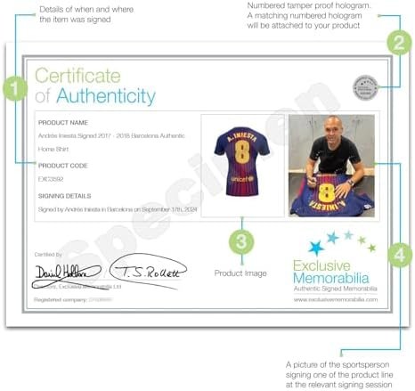 Exclusive Memorabilia unconditionally guarantees all signed items are genuine. The item will come with a certificate of authenticity showing the celebrity at the autograph session. The certificate features a numbered hologram that matches an identical hologram affixed to the product.