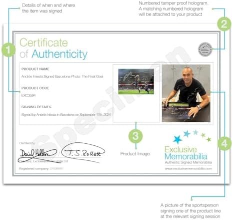This photo was personally signed by Andres Iniesta on September 17, 2024 in Barcelona. It shows Iniesta celebrating after scoring in the 2018 Copa del Rey final against Sevilla. This was Andres Iniesta’s last goal for FC Barcelona.