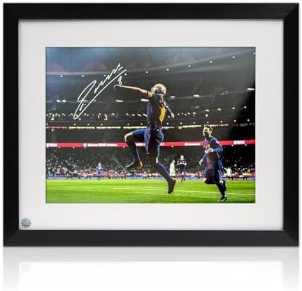 16 x 12 inches photograph, signed by Andres Iniesta. In standard black frame.