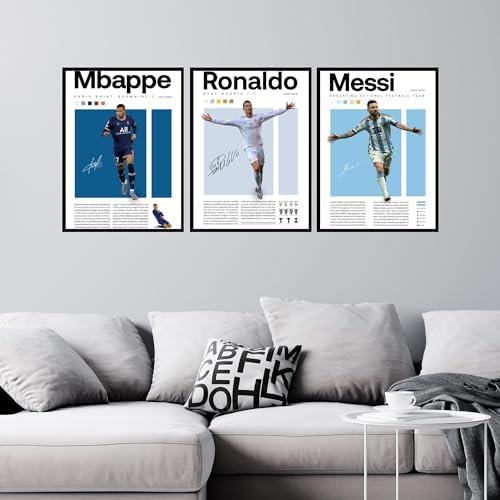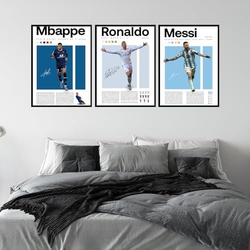 Inspirational Soccer Poster: Ignite your passion for the beautiful game with this set of 3 unframed 12×16” prints featuring legendary football icons. Each vibrant and high-quality image captures the spirit of the game, perfect for any soccer room decor.