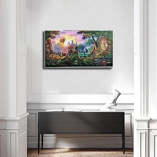 Cambodia Angkor Wat with Elephants Oil Painting Signed Canvas Prints Poster Canvas Poster Wall Art Prints Painting for Living Room Bedroom Room Aesthetics Decoration Gift (24x36inch-No Framed)