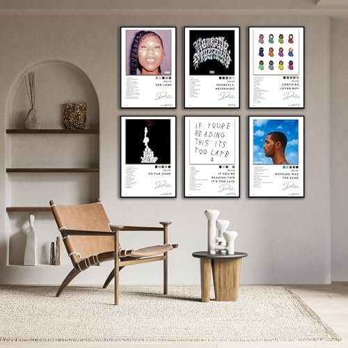 This product offers a set of 6 high-quality posters featuring album cover artwork .These posters are designed to enhance the aesthetics of bedrooms, particularly suited for music enthusiasts and fans of Drake.
