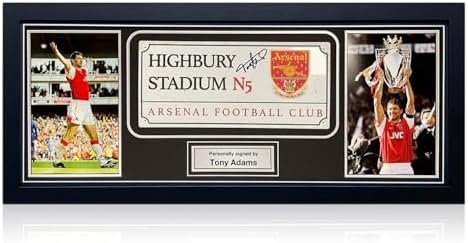 Metal Highbury Stadium street sign, signed by Tony Adams. In standard black frame. Approximate size: 970 x 420mm / 38 x 16.5 inches