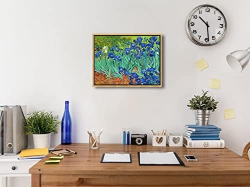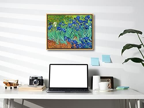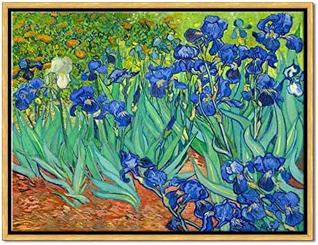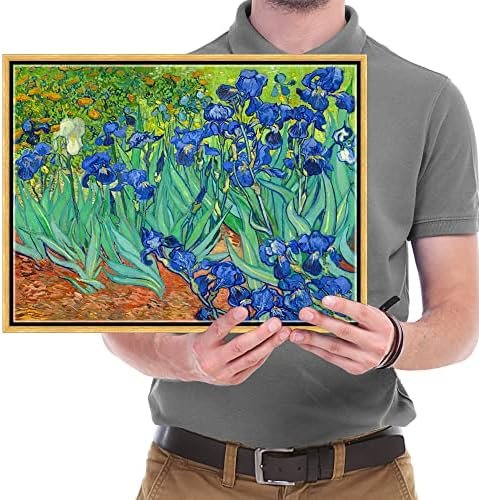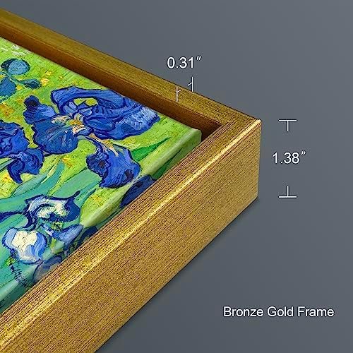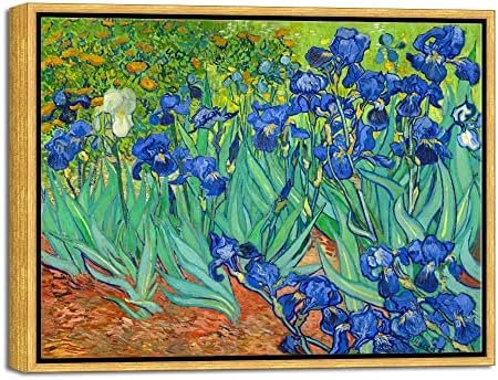 Wieco Art Framed Wall Art Canvas Prints Irises By Van Gogh Famous Flowers Oil Paintings Reproduction Abstract Canvas Prints for Home Living Room Decorations Bronze Gold Frame