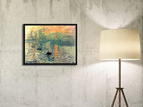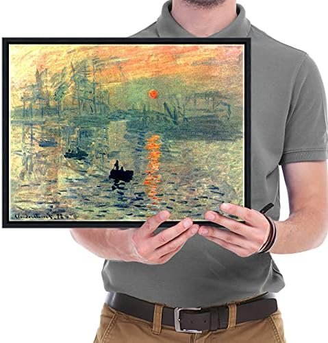 This is a reproduction canvas prints named “Sunrise” by Claude Monet.Art image Size:(W) 16 in x (H) 12 in. Finished Framed Size: (W)16.2 in x (H) 12.2 in,1.3inch thick.Frame is of PS lightweight environment protection material, moisture-proof, no smell (so it is also safe to be placed in the children’s room).Black finish frame is designed to beautify many different spaces in your home.
