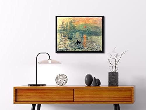 Wieco Art Impression Sunrise Modern Framed Canvas Wall Art Canvas Prints of Claude Monet Oil Paintings Reproduction Seascape Artwork Sea Pictures on Canvas for Home Decorations