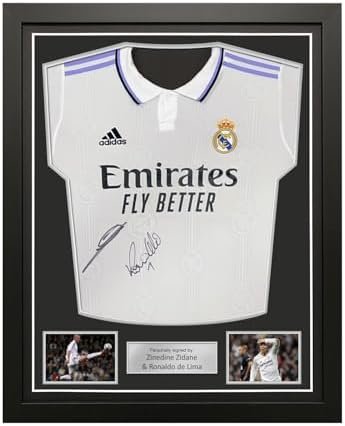 2022-23 Real Madrid Home Shirt signed by Zinedine Zidane and Ronaldo Luís Nazário de Lima. Authenticated by Beckett. In standard black frame. Approximate size: 840 x 670 mm / 33 x 26.5 inches